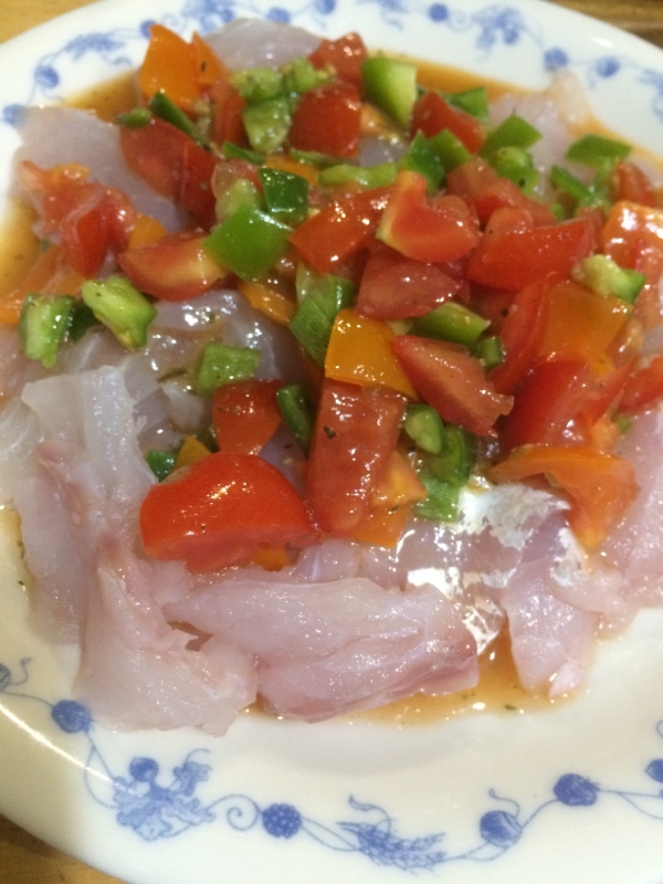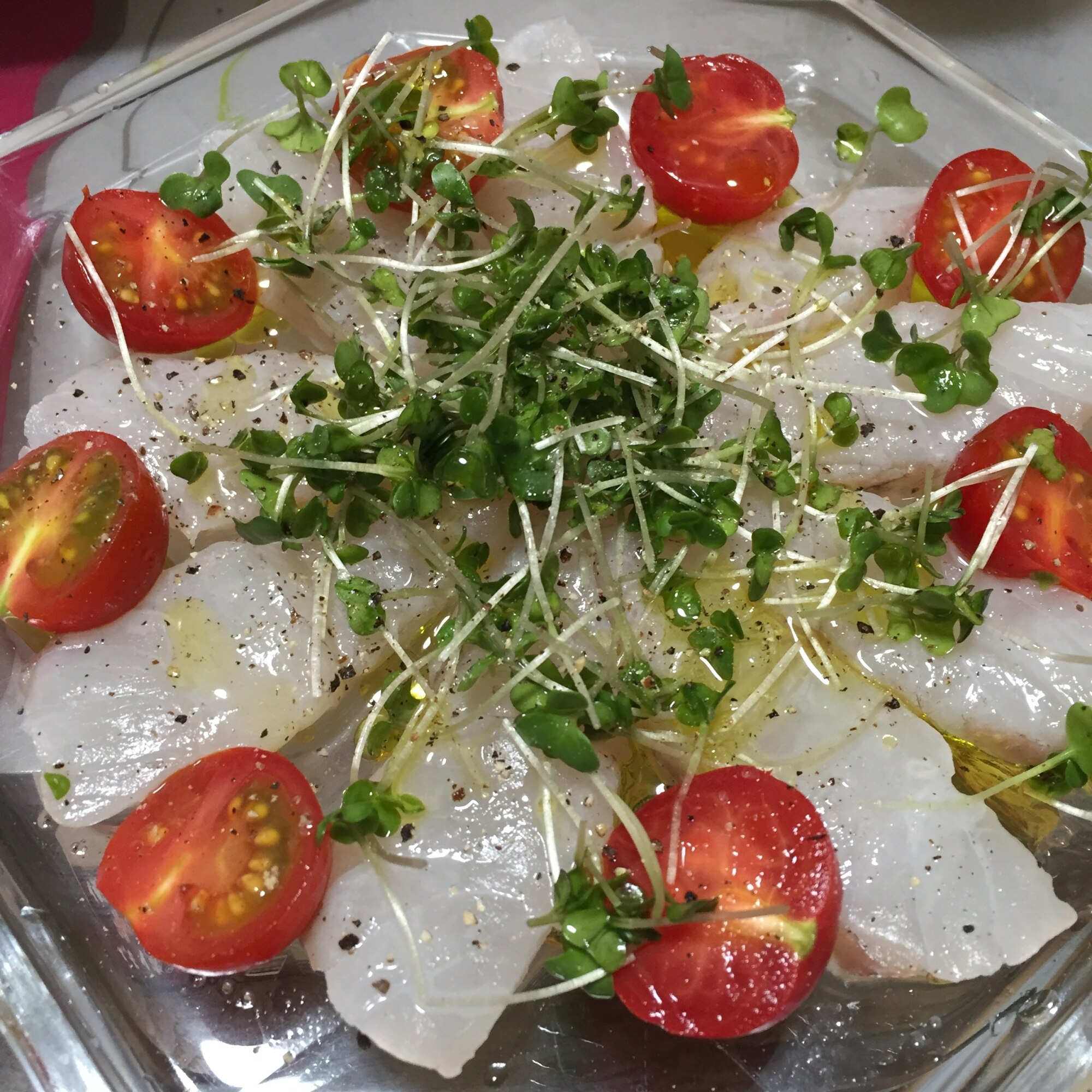 白身魚のお刺身 スズキ のカルパッチョ 冷凍トマトのすりおろしトッピング レシピ レシピラボ